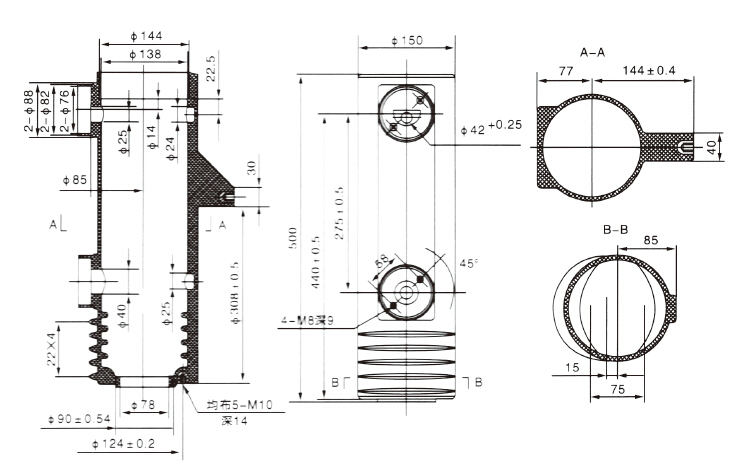 JS1-12KV/630A~1250A VS1绝缘筒(四孔)